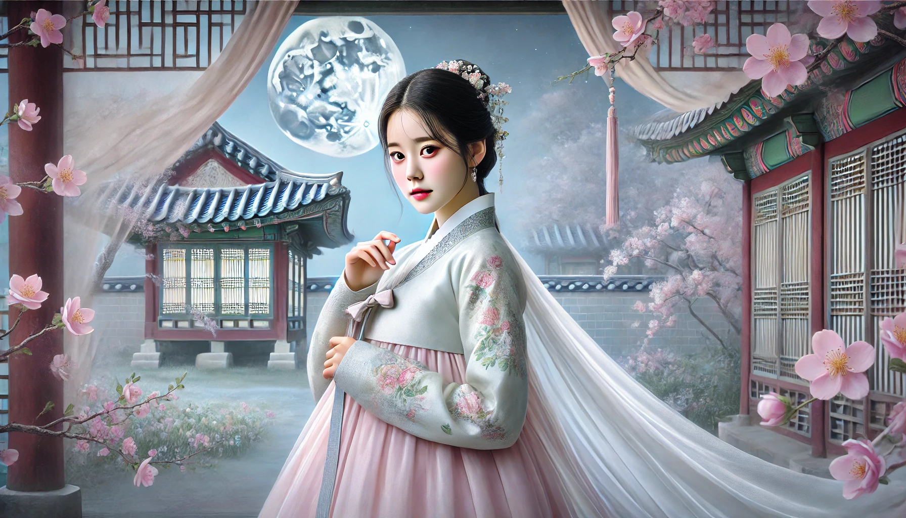 깊은 밤, 한양의 기방. 무거운 침묵 속에서 한 여인의 숨소리만이 가늘게 새어나옵니다. 24살의 연화, 그녀의 눈빛은 깊고 어둡습니다. 거울 앞에 선 그녀의 모습이 촛불에 일렁입니다.