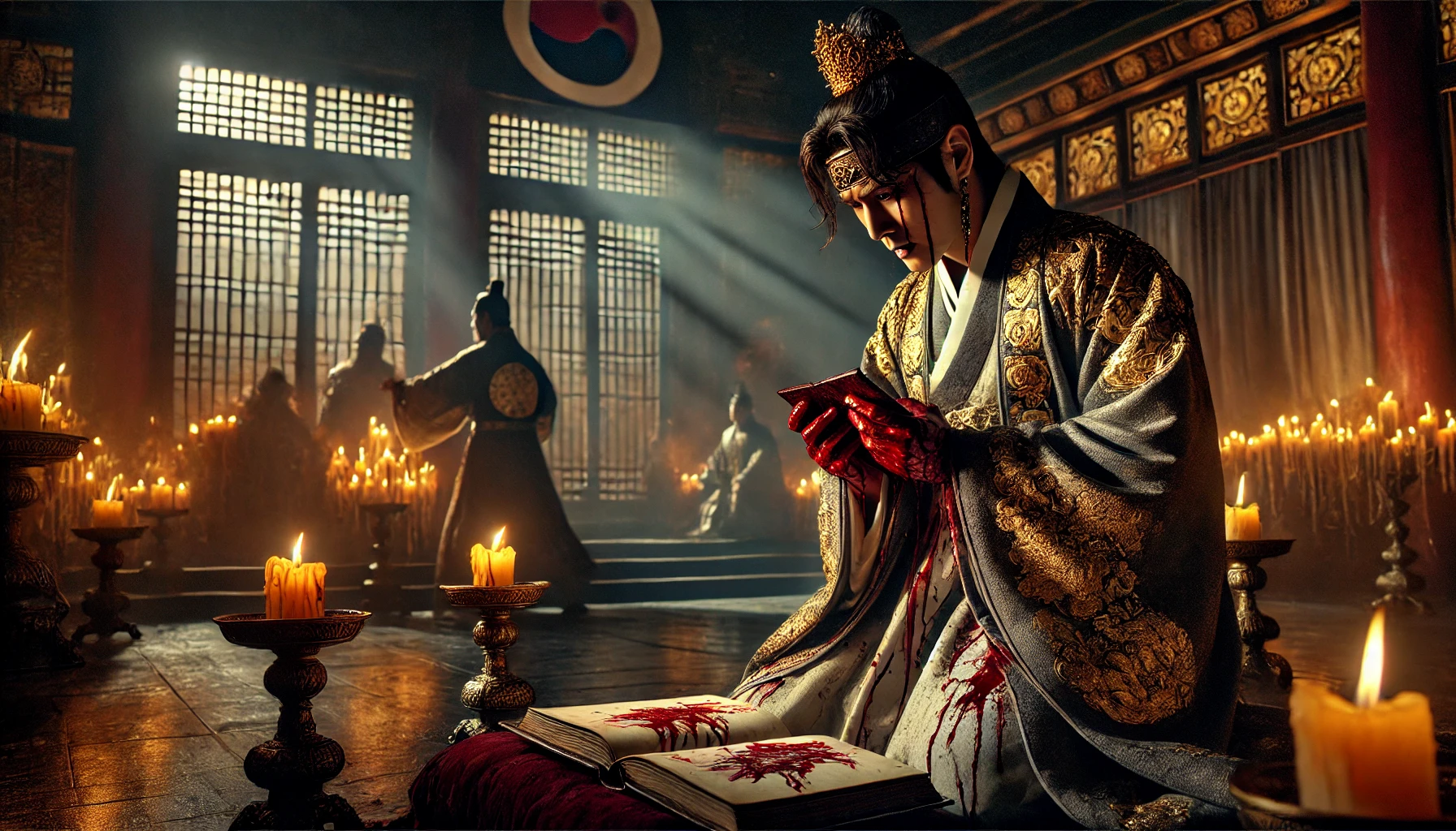 "전하, 이제 교지를 내리시옵소서." 승정원 승지의 목소리에 연산군은 천천히 붓을 들었습니다. 그의 손이 미세하게 떨리고 있었습니다.