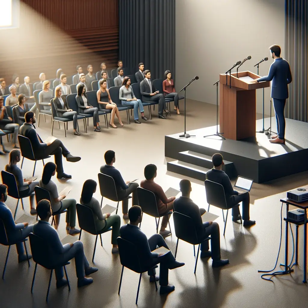 대중 연설 불안을 해결하려면 무대에 오르기 전에 정신적으로나 육체적으로 준비하는 루틴을 개발하십시오. 여기에는 심호흡 운동, 간단한 명상 또는 일련의 신체 스트레칭이 포함될 수 있습니다. 청중의 판단에 대한 두려움보다는 전달하고 싶은 메시지에 집중하세요. 연습을 통해 불안을 흥분과 에너지로 바꾸어 연설 능력을 향상할 수 있습니다.