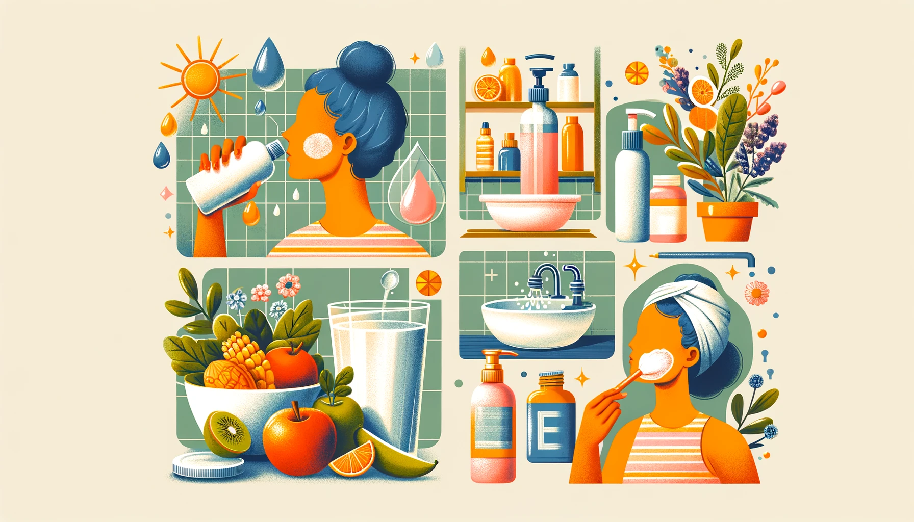 - 과일: 오렌지, 딸기, 키위 등 비타민 C가 풍부한 과일을 섭취합니다. 이는 피부를 밝고 생기 있게 유지하는 데 도움이 됩니다.